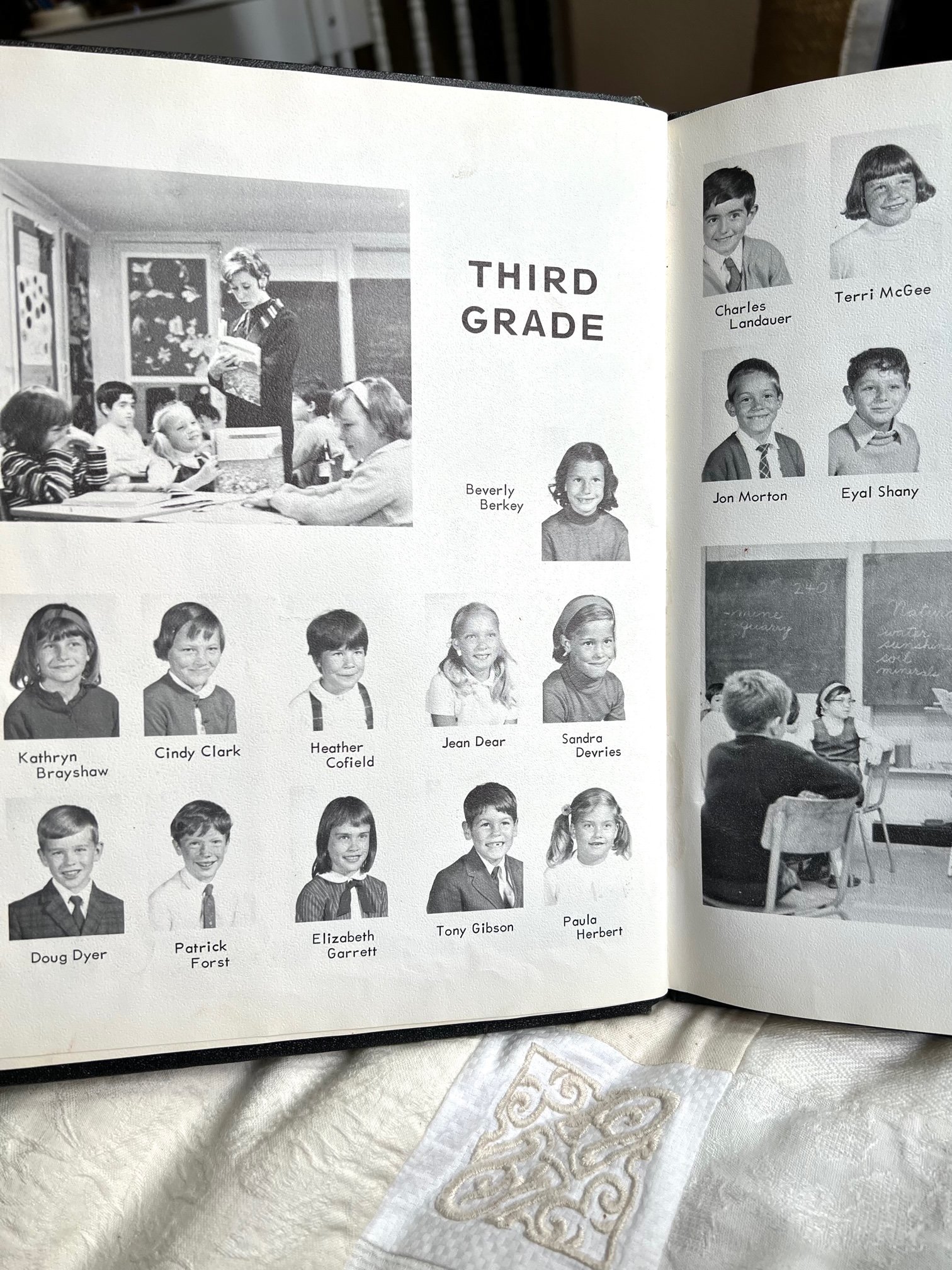 • digging out my yearbook and remembering myself at age 9-10 (Terri McGee), and my teachers (Mrs. Huygen, Mr. Peel)